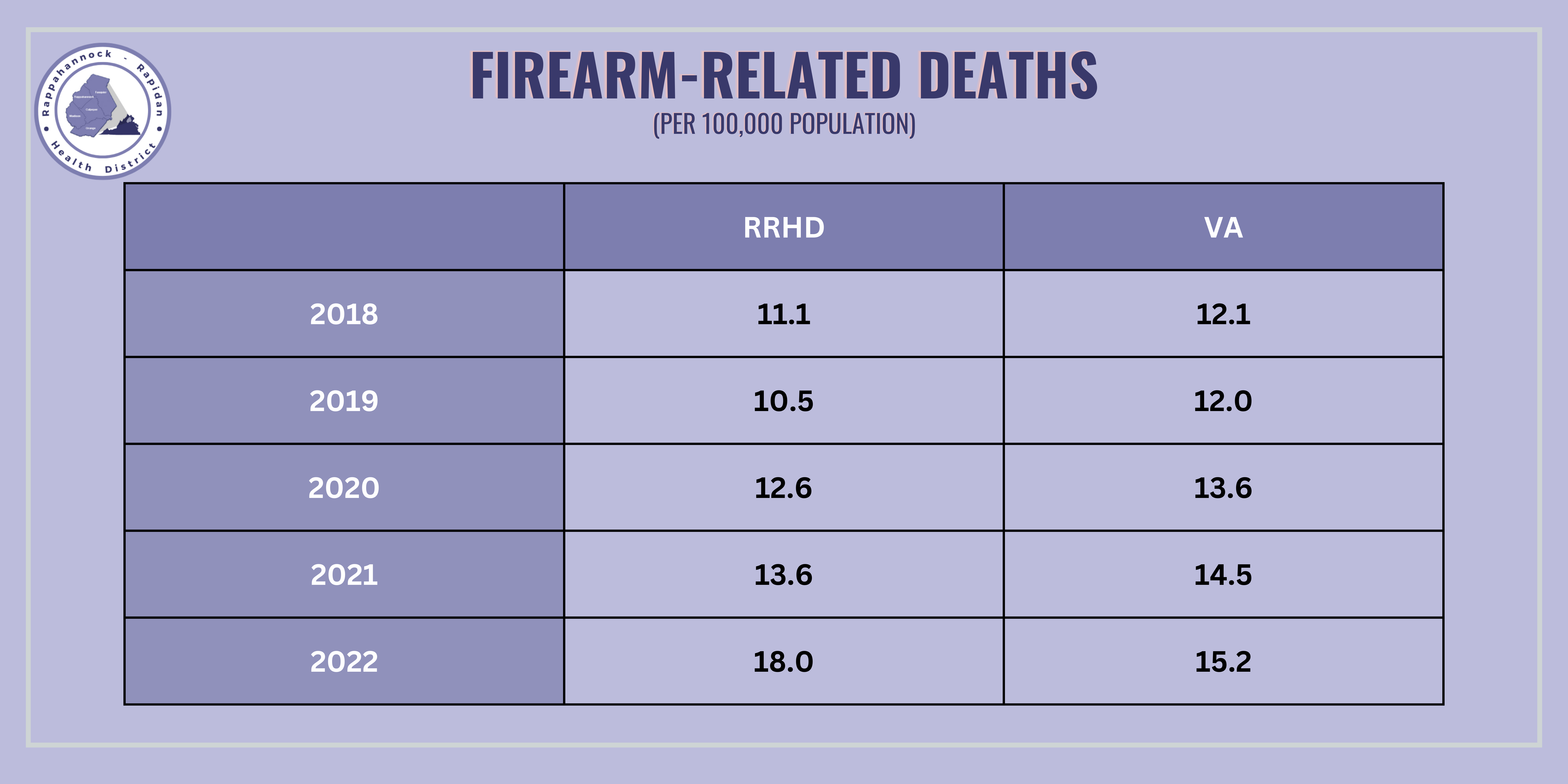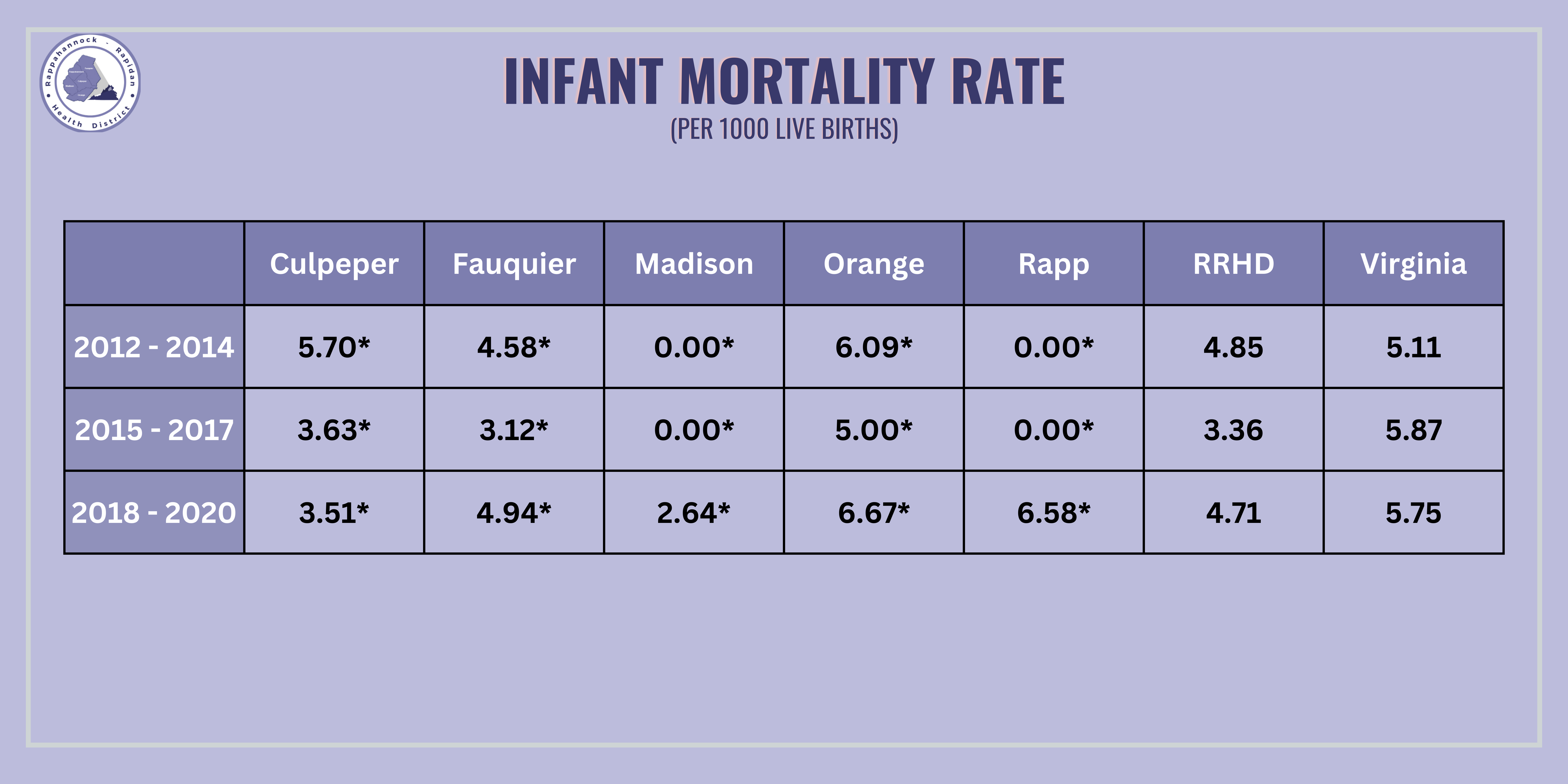 RRHD 健康。區內所有縣(庫爾佩珀,福基爾,麥迪遜,奧蘭治和拉帕漢諾克)和弗吉尼亞州的比較